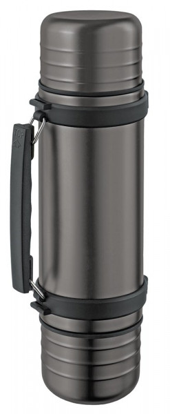RVS Thermosfles DUO 1 liter. Deze dubbelwandige thermosfles is gemaakt van roestvrijstaal (RVS) waardoor de inhoud lang op de gewenste temperatuur blijft. Aan zowel de boven- als onderzijde treft u een thermosbeker aan zodat u samen heerlijk kunt genieten van een lekker bakje koffie. Bestel eenvoudig online. Eigenschappen RVS Thermosfles DUO 1 liter: - Thermosfles - Materiaal: Roestvrijstaal (RVS) - Inhoud: 1.0 liter - Kleur: Titanium Grijs - Dubbelwandig - Hoogte: 345 mm - Diameter: 95 mm - Diameter drinkopening: 49 mm - Gewicht: 910 gram - Quickstop systeem - Geleverd met handgreep en schouderriem - Warme dranken blijven 24 uur warm - Koude dranken blijven 48 uur koud - Verwijderbare drinkbeker - Geleverd met 2 bekers die aan boven- en onderzijde verwijderd kunnen worden - Nieuwste vacuumtechniek - 5 jaar garantie - Merk: Isosteel