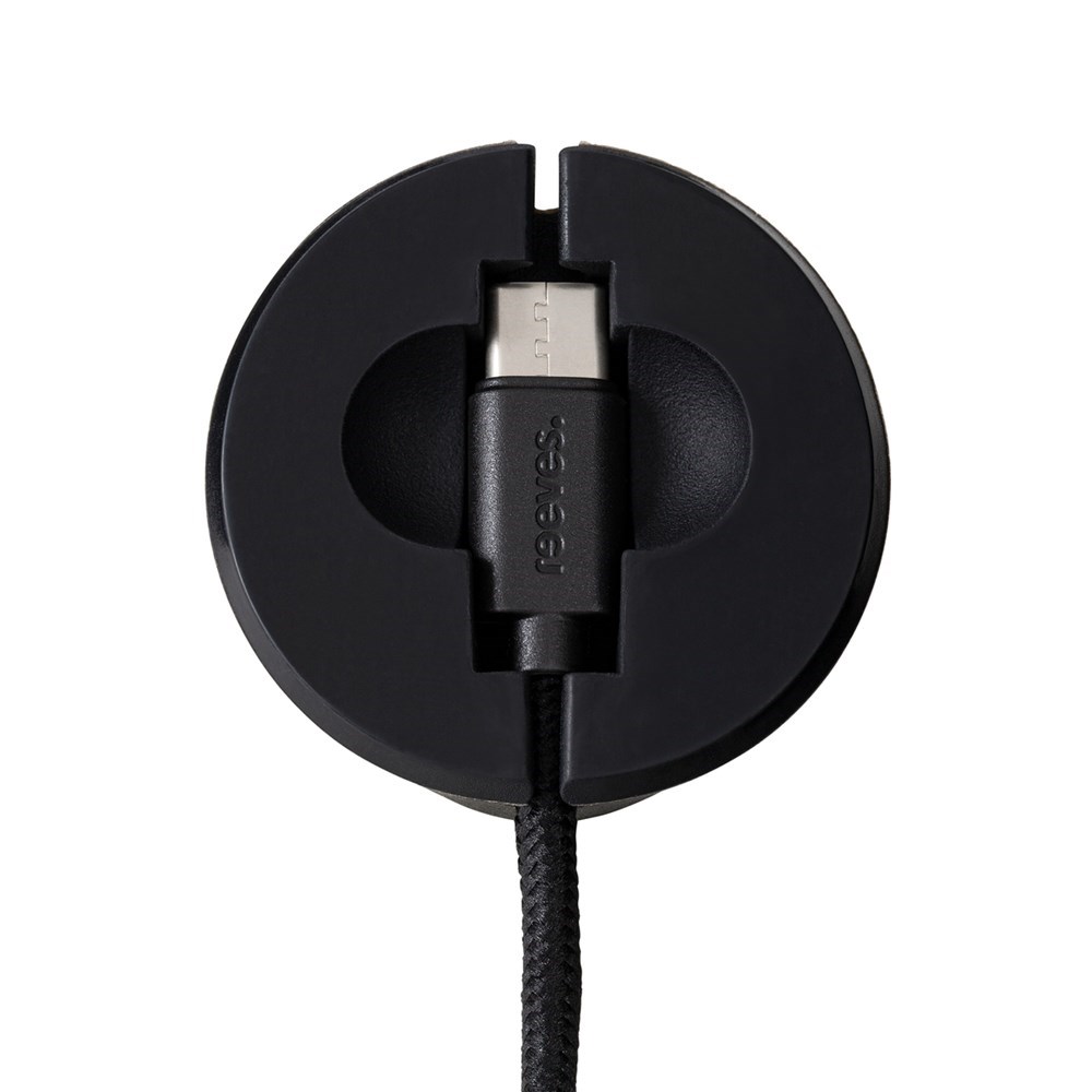 REEVES-Convertics Desktop houdt je kabel binnen handbereik op het bureau en helpt je om meer orde te scheppen. Perfect voor gebruik op kantoor of thuis. Dit eigen REFLECTS®-ontwerp is verkrijgbaar in klassiek zwart of wit en heeft een antislip siliconen onderkant. Om je kabel in de houder te bevestigen, steek je deze gewoon in de geleiding aan de onderkant. De praktische uitsparing aan de onderzijde van de houder biedt extra opbergruimte voor de USB-C-kabel.